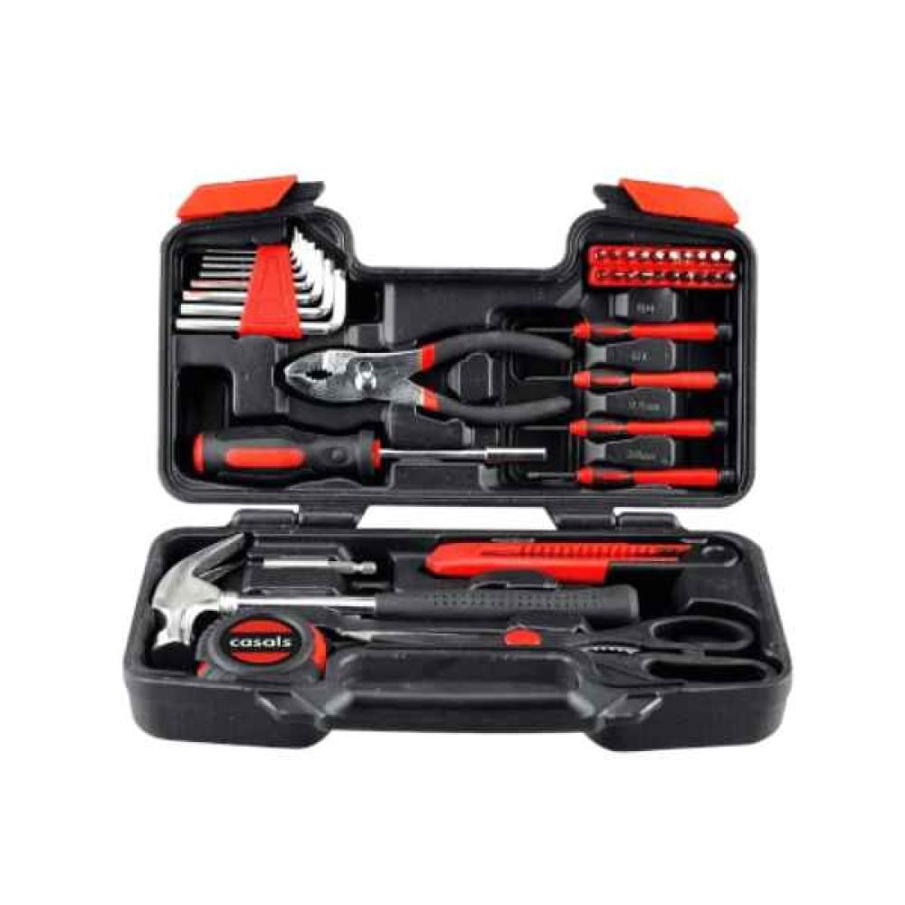 يتضمن هذا الطقم جميع الأدوات الأساسية التي تحتاجها لإنجاز معظم الإصلاحات حول المنزل. إنه مثالي لأصحاب المنازل ومحبي والمحترفين على حدٍ سواء.